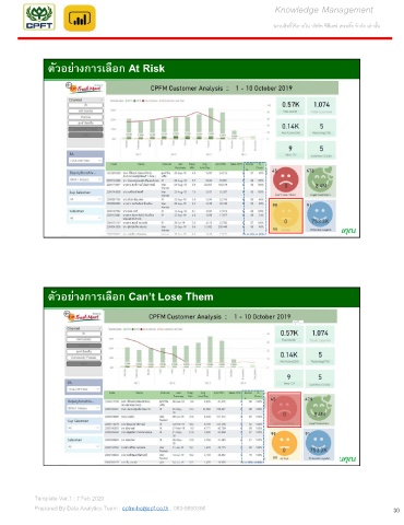 Knowledge Management สงวนสิทธิ ใช้ภายใน บริษัท ซีพีเอฟ เทรดดิ ง จํากัด เท่านั น ตัวอย่างการเลือก At Risk 59 ตัวอย่างการเลือก Can’t Lose Them 60 Template Ver.1 : 7 Feb 2020 Prepared By Data Analytics Team : cpfm-bc@cpf.co.th , 083-9890396 30