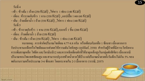 หมายเหตุ : ควรจํากัดปริมาณโซเดียม 4.77-8.8 กรัม หรือเทียบกับเกลือ 1 ช้อนชา เนื่องจากการ