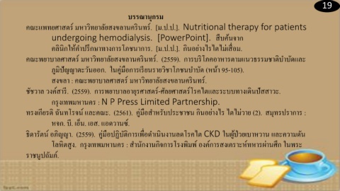 ทรงเกียรติ ฉันทโรจน์ และคณะ. (2561). คู่มือสําหรับประชาชน กินอย่างไร ไตไม่วาย (2). สมุทรปราการ :