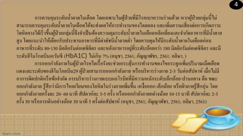 โลหิตจางได้เร็วขึ้นผู้ป่วยกลุ่มนี้จึงจําเป็นต้องความคุมระดับนํ้าตาลในเลือดหลีกเลี่ยงและจํากัดอาหารที่มีนํ้าตาล