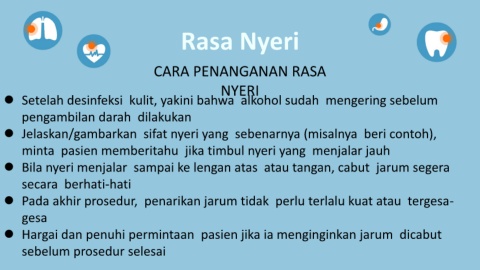 ⚫ Bila nyeri menjalar sampai ke lengan atas atau tangan, cabut jarum segera