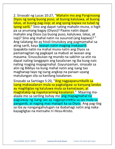 2. Sinasabi ng Lucas 10:27, "Mahalin mo ang Panginoong