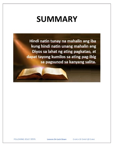 SUMMARY FOLLOWING JESUS’ STEPS Lessons On Lock-Down CHURCH OF CHRIST @ CUBAO