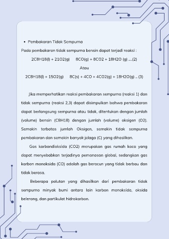 Pada pembakaran tidak sempurna bensin dapat terjadi reaksi :