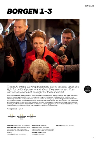 The central figure is the 40-year-old political leader Birgitte Nyborg, whose idealism and sheer hard work