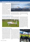ber hinein laufenden Aktion war die Kontrolle der Einhaltung von Emissionsgrenzwerten in dem Emissionskontrollgebiet der Ostsee. Die Drohne startete von der Marineküs- tenstation Marienleuchte auf Fehmarn und unternahm zweimal täglich rund vierstündige Überwachungsflüge, um den Schwefelgehalt der Abgase vorbeifahrender Schiffe im See- gebiet zwischen dem Fehmarnbelt und der Kadetrinne präzise zu messen – erlaubt sind maximal 0,10 % m/m. Dabei flog die Drohne in sicherem Abstand gezielt von hinten in die Abgasfahne des ausgewählten Schiffes hin- ein. Zum Einsatz kam eine 3,1 m lange Drohne mit einem Gewicht von etwa 200 kg. Ausge- stattet mit hochpräzisen Sensoren erfasste sie unter anderem die Konzentrationen von Schwefeldioxid (SO2). hjw