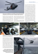 sucht, auf dem Atlantik nah an das ran- zukommen, was sie auch in Nordholz technisch leisten kann, und dafür zu sor- gen, dass die Hubschrauber möglichst immer einsatzbereit sind. Zudem müs- sen die richtigen Ersatzteile, vom O-Ring bis zum Rotorblatt, mitgeführt werden. Nach der ersten Hälfte von Atlantic Bear ist das Fazit positiv, es gab wenig Störun- gen. Die Sea Lions waren jederzeit tech- nisch einsatzbereit und alle geforderten Flüge konnten geleistet werden. Damit erweitern die Marineflieger, die nicht zur Stammbesatzung des Schiffs gehören, mit ihren Bordhubschraubern die Fähig- keiten des EGV enorm. Primär sind sie für den Personal- und Materialtransport zuständig. Sie machen aber auch Such- und Rettungsflüge. Zudem ermöglicht der Sea Lion der Schiffsführung mit sei- nem leistungsstarken Seeraumüberwa- chungsradar einen Blick über den eige- nen Radarhorizont. 7