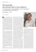Das heißt, selbst wenn die Marine zukünf- tig nicht selbst von den Auswirkungen sich häufender Extremwetterereignisse betroffen wäre, würden sich Einsätze im zivilen Bereich häufen. Insgesamt bedeu- tet dies eine kontinuierliche Belastung für die Einsatzbereitschaft und auch die Reaktionsfähigkeit, da sie Kräfte binden, die für den Kernauftrag benötigt werden. Um den Kernauftrag erfüllen zu können, ist es also unerlässlich, dass die Marine in ihren Planungen die Auswirkungen des Klimawandels nicht nur berücksichtigt und sich an den Klimawandel anpasst, sondern auch selbst einen Beitrag zum Klimaschutz leistet. Dies gewährleistet, dass die Marine „dauerhaft, resilient und eskalationsfähig in allen Operationsge- bieten präsent sein“ kann und einsatzbe- reit ist, wenn sie gebraucht wird – eines der Hauptziele, die sich die Marine für die nächsten zehn Jahre steckt. Warum? Weil sich Einsatzbereitschaft, Kampffähigkeit und Klimaschutz nicht ausschließen. Weil sich für die Marine Vorteile ergeben, wenn sie Klimaschutz und Klimaanpassung kon- sequent in ihre Planungen mit einbezieht. Dies möchte ich im Folgenden anhand ausgewählter Beispiele erläutern.
