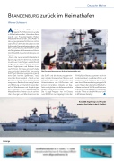 Am 13. September 2025 machte die Fregatte F 215 brandenburg wieder in Wilhelmshaven fest. Unter dem Kom- mando von Fregattenkapitän Robert Meyer-Brenkhof war der „Rote Adler“ in den vergangenen sechs Monaten im Ein- satz Unifil vor der Küste des Libanons. Der Auftrag der Fregatte bestand darin, den See- und Luftraum zu überwachen sowie die Fähigkeiten der libanesischen Marine durch Ausbildungsunterstützung zu ver- bessern.
