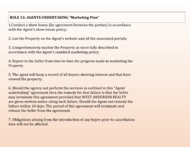 RULE 13: AGENTS UNDERTAKING “Marketing Plan”