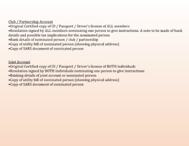 •Resolution signed by ALL members nominating one person to give instructions. A note to be made of bank