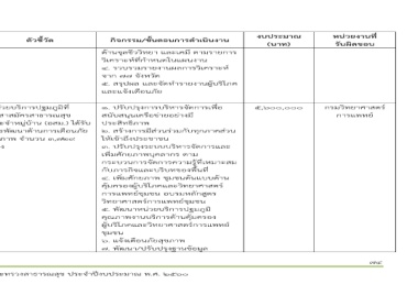กิจกรรม/ขั้นตอนการดําเนินงาน ด6านจุลชีววิทยา และเคมี ตามรายการ วิเคราะห-ที่กําหนดในแผนงาน 4. รวบรวมรายงานผลการวิเคราะห- จาก 77 จังหวัด 5. สรุปผล และจัดทํารายงานผู6บริโภค และแจ6งเตือนภัย 1. ปรับปรุงการบริหารจัดการเพื่อ สนับสนุนเครือข1ายอย1างมี ประสิทธิภาพ 2. สร6างการมีส1วนร1วมกับทุกภาคส1วน ให6เข6าถึงประชาชน 3. ปร