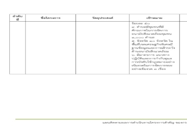 เปEาหมาย หนHวยงานที่ งบประมาณ กิจกรรม/ขั้นตอนการดําเนินงาน ตัวชี้วัด รับผิดชอบ (บาท) 6. พัฒนาหลักสูตรและจัดทําชุด ความรู6สนับสนุนการดําเนินงาน 7. สนับสนุน กํากับ ติดตามและ ศักยภาพในการจัดการ ประเมินผลการดําเนินงาน อนามัยสิ่งแวดล6อมชุมชน 5. จังหวัด 10 จังหวัด ใน พื้นที่เขตเศรษฐกิจพิเศษมี ฐานข6อมูลและการเฝ=าระว