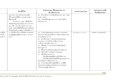กิจกรรม/ขั้นตอนการ ดําเนินงาน ๖. ดําเนินการจัดสCงแวCน แกC รพ. ๒๕ แหCง ๗. สรุปข>อมูลจากการดําเนิน โครงการ 1. ประชุมคณะกรรมการกCอน ระหวCางและหลังการดําเนินงาน ตามโครงการ 2. นําโครงการเสนอตCอคณะ กรรมการบริหารพิจารณา กลั่นกรองโครงการ 3. จัดทําการประชาสัมพันธO โครงการ 4. ขึ้นทะเบียนกลุCมเป^าหมาย 5. จัดบริการใสCตาป