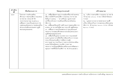 เปEาหมาย หนHวยงานที่ กิจกรรม/ขั้นตอนการ งบประมาณ ตัวชี้วัด รับผิดชอบ ดําเนินงาน กรมการแพทยO 7,000,000 1. ประสานงานพื้นที่เป^าหมาย จํานวนคนพิการที่ได>รับ เพื่อขอความเห็นชอบความ บริการ จํานวน 900 ราย (จังหวัดละ 300 รCวมมือและการสนับสนุนในการ - สํารวจคนพิการขาขาดทุก ระดับ ทุกเพศวัย ทุกประเภท สิทธิการรักษา พิ