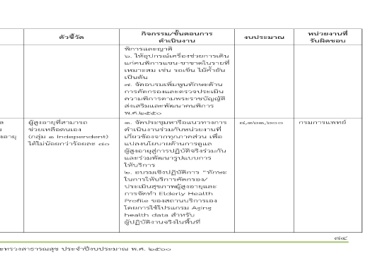 พบบCอยในผู>สูงอายุ การคัดกรอง และประเมินกลุCมโรคหรืออาการที่ พบบCอยในผู>สูงอายุ (Geriatric syndromes) และการประเมิน สมรรถนะผู>สูงอายุเพื่อการดูแล สุขภาพผู>สูงอายุ ให>ผู>ปฏิบัติมี สะดวกและทั่วถึง 3. เพื่อทบทวน/สังเคราะหOรูปแบบ การดูแลผู>สูงอายุที่ต>องได>รับการ รCวมคิดรCวมทํากับภาคสCวนอื่