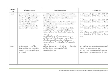 ชื่อโครงการ โครงการพัฒนาและ จัดทําชุดเครื่องมือและ องคOความรู>ในการเฝ^า ระวัง ป^องกัน ควบคุม โรคไตเรื้อรัง (CKD) และโรคหัวใจและ หลอดเลือด(CVD) ใน สถานบริการสุขภาพ สนับสนุนการแก>ไข ปlญหาผู>เสพยาเสพติด และการควบคุมตัวยา/ สารเคมี