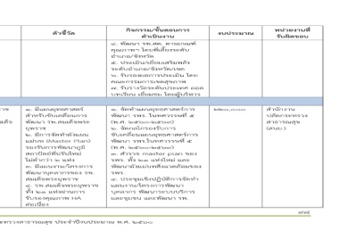 กิจกรรม/ขั้นตอนการ ดําเนินงาน ๔. พัฒนา รพ.สต. ตามเกณฑO คุณภาพฯ โดยพี่เลี้ยงระดับ อําเภอ/จังหวัด ๕. ประเมิน/เยี่ยมเสริมพลัง ระดับอําเภอ/จังหวัด/เขต ๖. รับรองผลการประเมิน โดย คณะกรรมการเขตสุขภาพ ๗. รับรางวัลระดับประเทศ ถอด บทเรียน เยี่ยมชม โดยผู>บริหาร 1. จัดทําแผนยุทธศาสตรOการ พัฒนา รพร. ในทศวรรษที่ 5 (พ.ศ. 2560-2