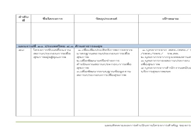 ชื่อโครงการ แผนงานที่ 10 ประเทศไทย 4.0 ด(านสาธารณสุข โครงการขับเคลื่อนงาน สถานประกอบการเพื่อ สุขภาพมุCงสูCคุณภาพ