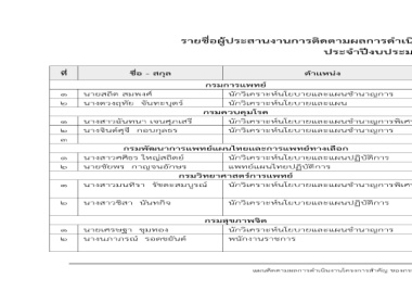 รายชื่อผู.ประสานงานการติดตามผลการดําเนินงานโครงการสําคัญ กระทรวงสาธารณสุข