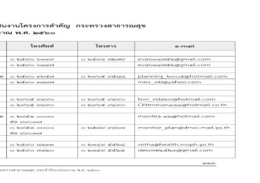รายชื่อผู.ประสานงานการติดตามผลการดําเนินงานโครงการสําคัญ กระทรวงสาธารณสุข