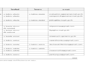 jtdtrs@fda.moph.go.th siripornmax@gmail.com fkpi@hss.mail.go.th sineenuch.c@niems.go.th meawrnothai@gmail.com pankung08@gmail.com