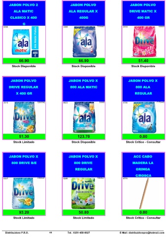 Distribuidora P.R.O. 44 Tel.: 0351-458-8927 E-Mail: distribuidorapro@hotmail.com