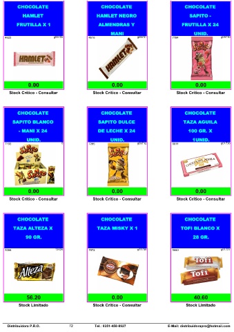 Distribuidora P.R.O. 72 Tel.: 0351-458-8927 E-Mail: distribuidorapro@hotmail.com