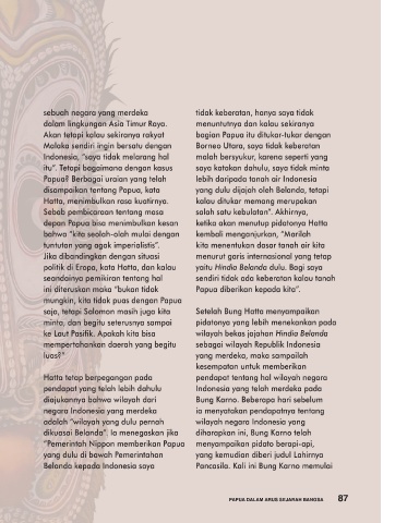 menandaskan bahwa “tanah Papua BPUPK-I ini, Hatta lebih dulu memberi Hatta tetap berpegangan pada pendapat tentang hal wilayah negara