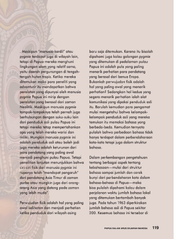 menonjol pun segera pula kelihatan. “Manusia kerdil” Papua ini mendiami purba atau mungkin juga dari orang- bahasa-bahasa di Papua—maka