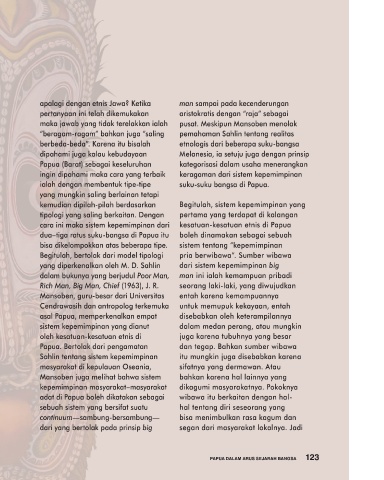 dalam bahasa nenek moyang mereka”. Kalau masalah pola kebahasaan cara ini maka sistem kepemimpinan dari kesatuan-kesatuan etnis di Papua