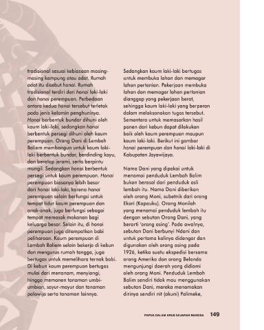 dan keuletannnya dalam berjuang walaupun mereka tinggal di gubuk- adat itu disebut honai. Rumah lahan pertanian. Pekerjaan membuka