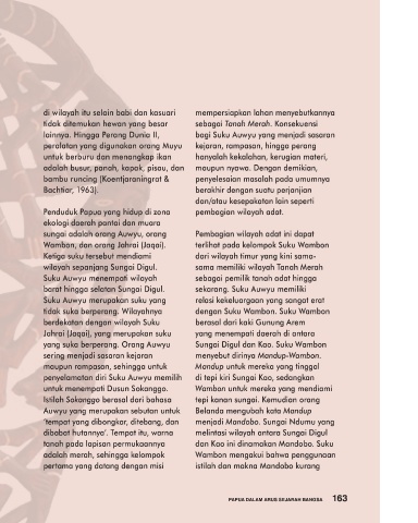 dan Suku Dani. Sedangkan suku-suku ladangnya ditanami berbagai jenis tidak ditemukan hewan yang besar sebagai Tanah Merah. Konsekuensi