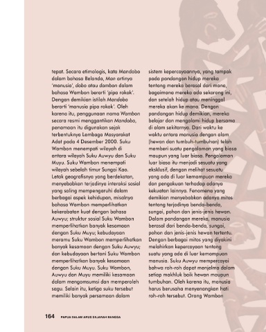 bahasa Wambon berarti ‘pipa rokok’. bagaimana mereka ada sekarang ini, yaitu datang melalui pohon kimit dan bahkan ada juga yang memotong