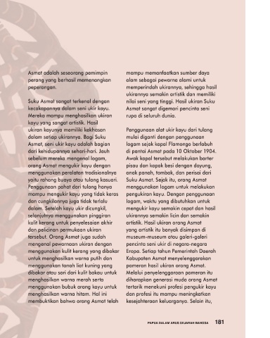 uripis. Aypem dapat tumbuh menjadi menyembelihnya sesuai dengan kecakapannya dalam seni ukir kayu. Asmat sangat digemari pencinta seni