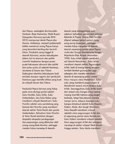 dalam hal ini ekonomi dan politik 1995). Suku Arfak adalah penduduk