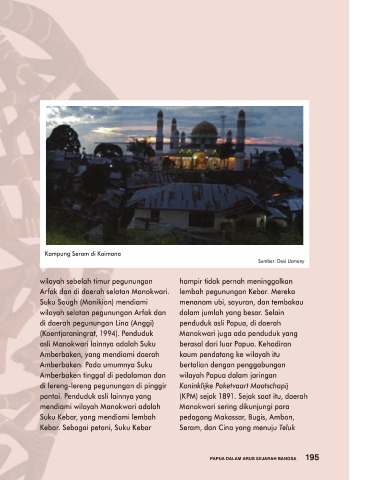 etnisitas maupun agama dari penduduk daerah di sepanjang pesisir pantai Kampung Seram di Kaimana