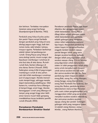 di tempat tinggi, amat tinggi. Mereka kekerabatann menurut tipe Hawaiian Papua juga didasarkan prinsip-prnsip melalui clan, yang merupakan hak