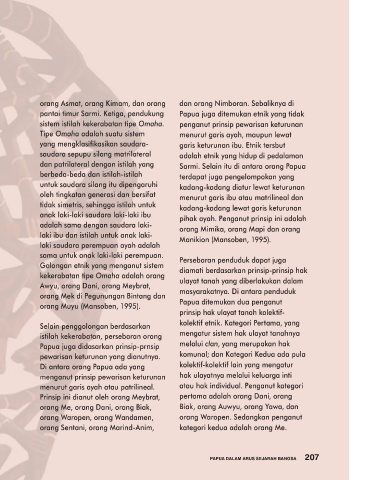 (Koentjaraningrat & Bachtiar, 1963). istilah kekerabatan. Orang Papua sistem istilah kekerabatan tipe Omaha. penganut prinsip pewarisan keturunan