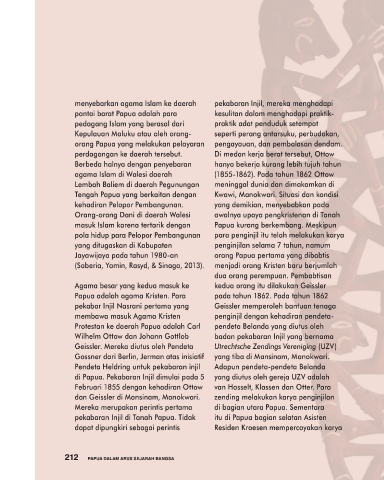 agama Islam di Walesi daerah (1855-1862). Pada tahun 1862 Ottow antara berbagai sekte dalam agama terhadap persebaran penduduk Papua