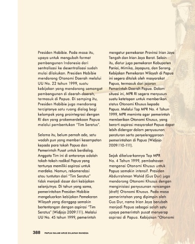 Presiden Habibie. Pada masa itu, mengatur pemekaran Provinsi Irian Jaya Khusus bagi Provinsi Papua” akhirnya hak dasar penduduk asli Papua;”