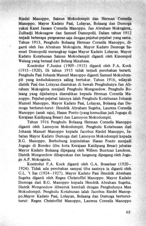 Manoppo. Mayor Kadato Pasi, Lolayan, Bolaang dan Dumoga
