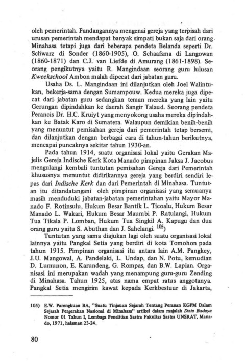 105) E.W. Parenglcuan BA, "Suatu Tinjauan Sejarah Tentang Peranan KGPM Dalam