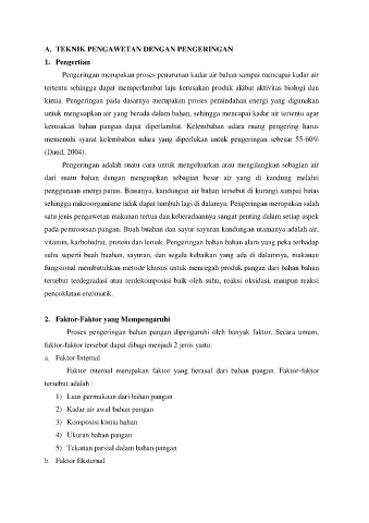 Proses pengeringan bahan pangan dipengaruhi oleh  banyak  faktor. Secara umum,