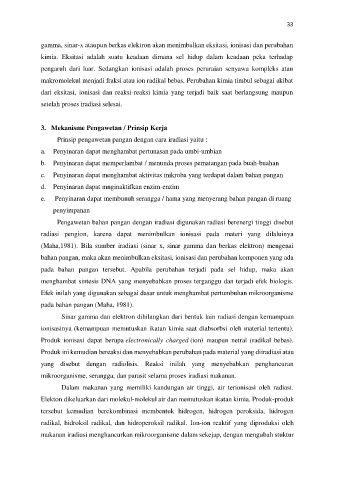 bahan pangan, maka akan menimbulkan eksitasi, ionisasi dan perubahan komponen yang ada