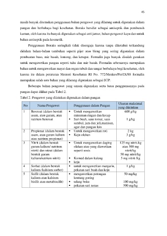 Tabel 2. Pengawet yang diizinkan digunakan dalam pangan