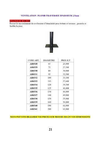 VENTILATION PLOMB TRAVERSEE EPAISSEUR 2,5mm