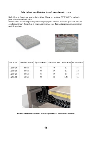 CODE ART Dimensions cm             Épaisseur mm      Épaisseur XPS R (m2 k/w) Unités/palette