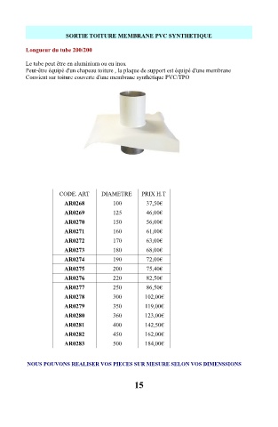 SORTIE TOITURE MEMBRANE PVC SYNTHETIQUE