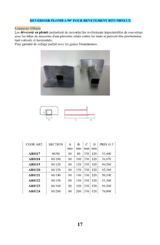DEVERSOIR PLOMB A 90° POUR REVETEMENT BITUMINEUX